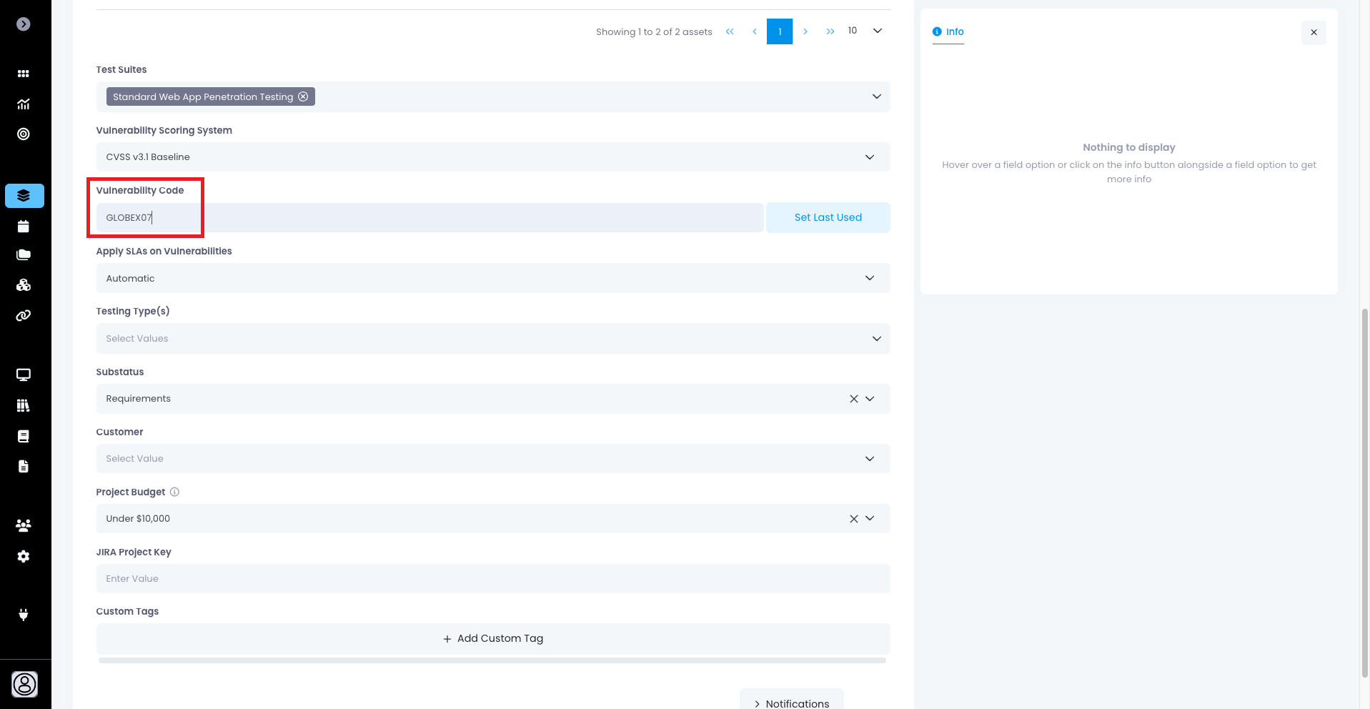 For example, if you set a vulnerability code as **SEC01** - the first vulnerability created on the project will have an alternate user-friendly unique identifier of **SEC01-1**. The next vulnerability will be **SEC02-2** and so on.